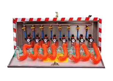 壓風(fēng)自救器一般形成系統(tǒng)后使用,即由若干組壓風(fēng)自救裝置安裝在同一個(gè)地點(diǎn)形成壓風(fēng)自救站,每組一般由3~5個(gè)頭組成,每個(gè)地點(diǎn)裝多少個(gè)頭,應(yīng)視該工作場(chǎng)所的工作人數(shù)而定,其安裝頭數(shù)應(yīng)大于在該場(chǎng)所工作的人數(shù)。該裝置系統(tǒng)結(jié)構(gòu)簡(jiǎn)單,價(jià)格便宜,是一種經(jīng)濟(jì)型永久性自救裝置系統(tǒng)。